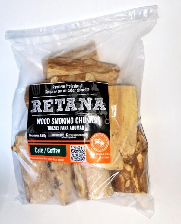 Paquete de 1.5 Kilogramos, elaboración artesanal, madera de café totalmente seca, tamaño del trozo es variable pero es alrededor de un puño. Madera sin corteza, sin químicos, totalmente natural, recomendada para usar en ahumadores o parrillas que tengan la capacidad de poder ahumar por horas, especial para ahumar costillas, Pulled Pork, cortes grandes como puntas de solomo pecho de res, Jiba, etc.