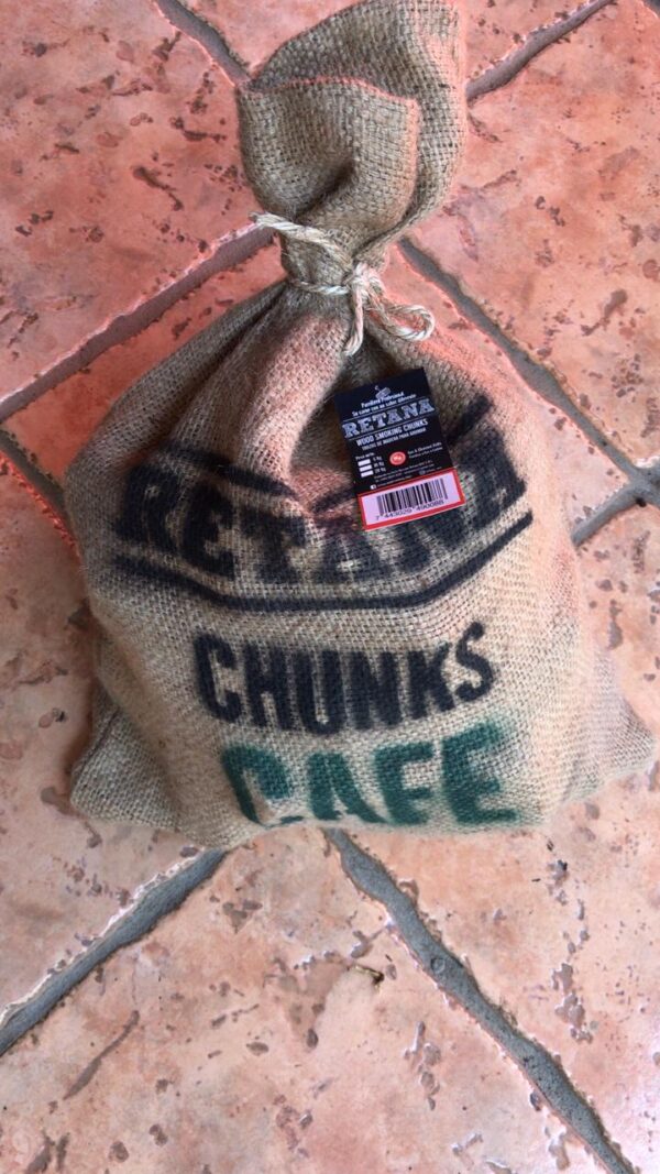 Empaque en sacos de yute. Elaboración artesanal, trozos o chunks de madera de raíz de café totalmente seca, sin corteza, sin químicos, totalmente natural y limpia, cortada en trozos para un ahumo mas duradero y mejor aprovechamiento, especial para hornos.